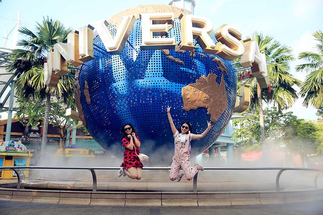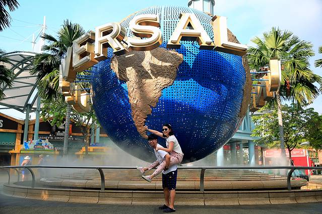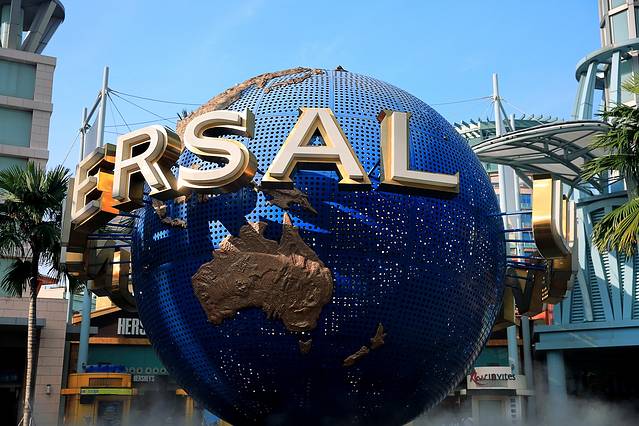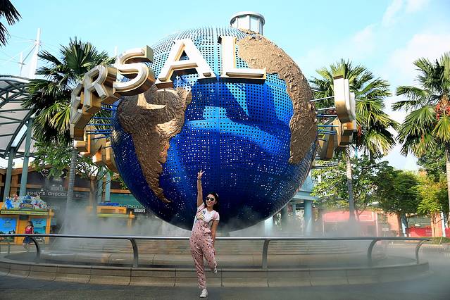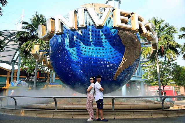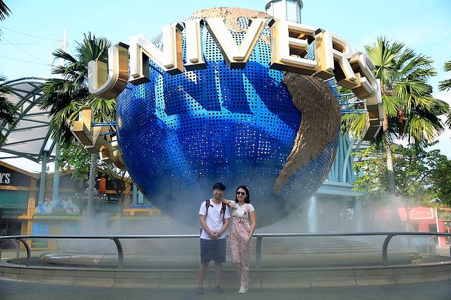 第三天,我们一样早起,收拾行李退房,打算去vivo city三楼的大食代吃早餐,但是大部分餐馆都没有营业,所以我们决定先搭乘捷运去环球影城附近去吃饭。这个决定很正确,因为我们到达环球影城时,时间是早上8点50,环球影城门口的地球还没有人拍照,太好的机会,一通猛拍。