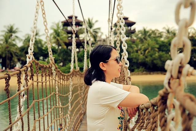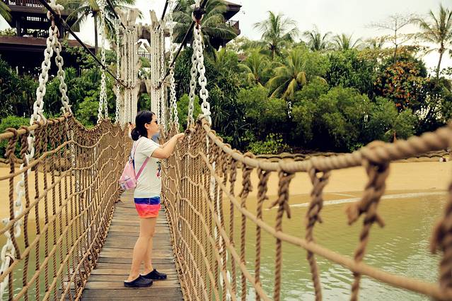在海湾酒店办理寄存行李后,我们决定步行前往圣淘沙岛,然后去水上乐园。