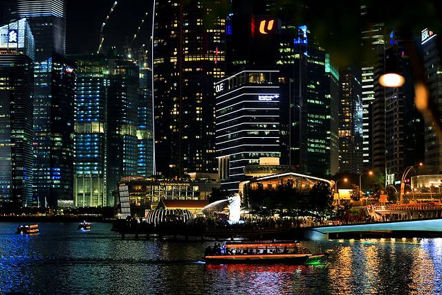 远处的金沙酒店和鱼尾狮公园。