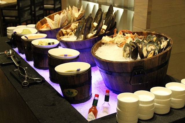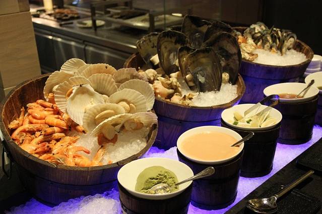来到天津丽思卡尔顿酒店一楼的香溢餐厅品尝自助餐。
