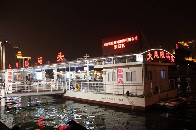 乘坐游船夜游海河,票价有点贵,时间约1小时,要80块。