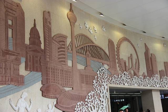 等taxi的时候看到这个墙壁,刻画了天津的著名建筑,让我深深感受到天津的美丽。