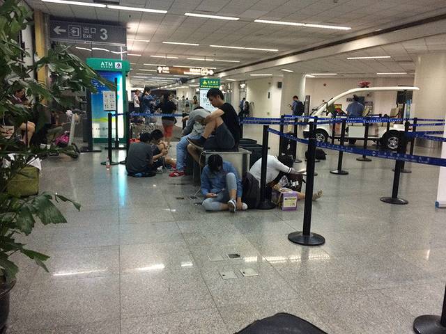 这就是所为的航站楼,没有位置坐,大家都只能坐在地上~