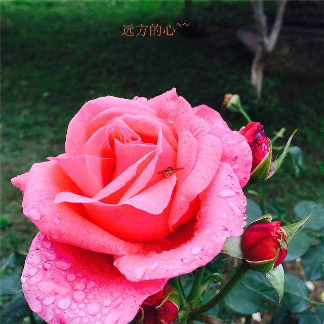 因为之前一天雨很大,所以今天的月季园的花绿叶青翠,花朵水嫩嫩的,草坪还是湿的,空气里清甜的味道。