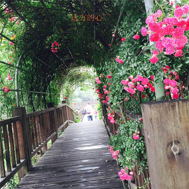 进去后发现满世界都是美丽的月季。沿着木桥往前走。看到月季花廊桥,好美丽啊。太美了。仙美。绝美,我毫不吝啬我的赞美之词,大爱大爱。