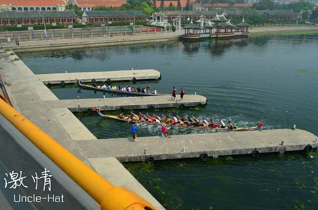 -这是厦门大桥下来,看到有人在划龙舟。很激情。