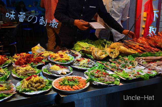 -看着这些美食,摸摸口袋。
