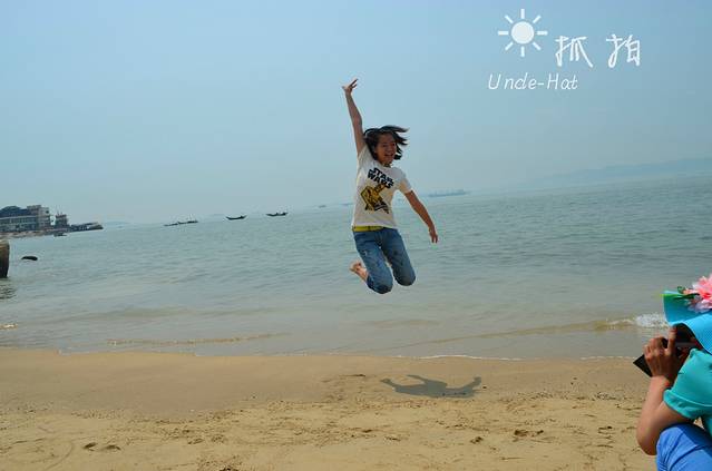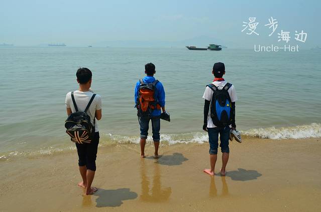 -大家都光着脚丫。虽然天气有点热,海水还是很凉的。