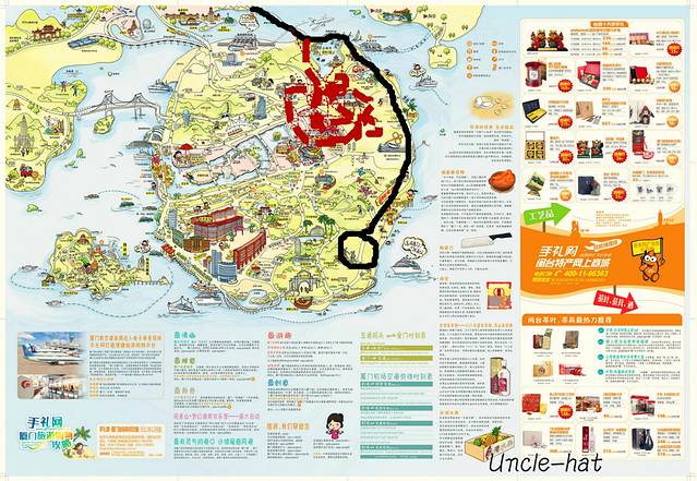 -下午到了厦门北,第一件事情就是买了一张手绘地图。(开价有10,15的。但是5块钱足够买到。这是血淋淋的经验教训哦。包括后面的鼓浪屿,厦大地图,5元足矣)
