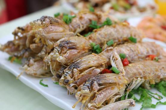 言归正传——吃,刚下飞机,行李匆匆扔到酒店,我们就噼里啪啦的赶到了第一市场吃海鲜。首先是让我魂牵梦绕的大龙虾。连续5天,我们都是在“第一市场四川小胡子”的同一个加工店吃,是熟客了,店家会给打不少折扣。比如120几元的加工费收我们100元。