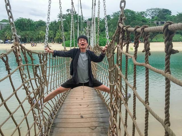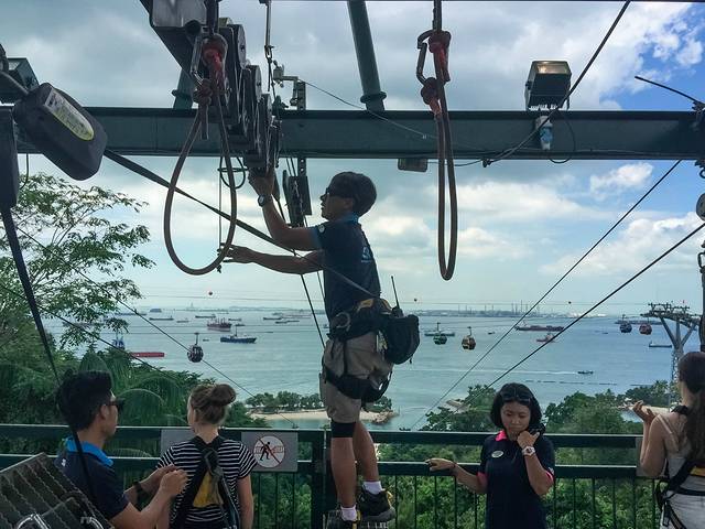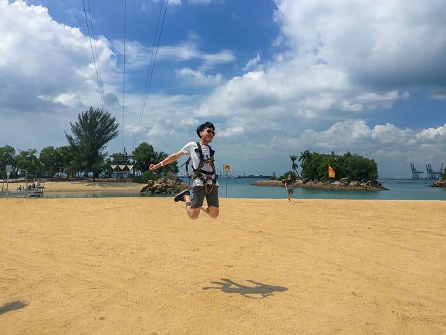 D4因为念念不忘的mega zip(十二道锋味中谢霆锋和桂纶镁签生死状,高空比赛吃汉堡的项目)我们今天早上又去了一次圣淘沙。
