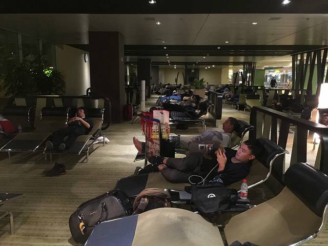 飞机抵达新加坡是凌晨的03:55。因为新加坡早班地铁是5:30左右,所以我们只能在樟宜机场找个地方补觉。
