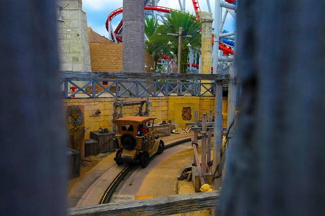 【木乃伊排队】的地方真的是山路十八弯啊。早上拍了一会发现队伍实在太长就放弃了等下午该去的都去的差不多了再回来耐心的排队。其实是黑暗中的过山车,加上3D效果。比起普通过山车最刺激的就是一点心理准备都有。