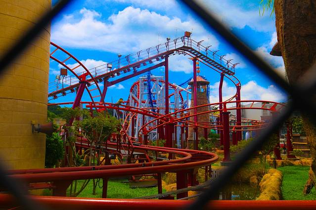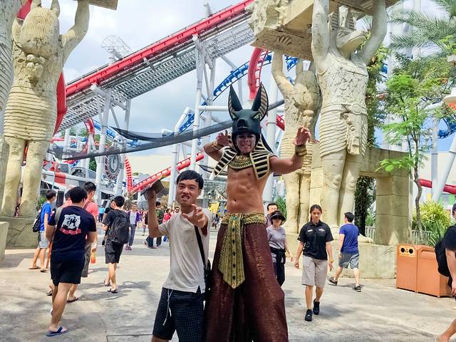 4.有些项目需要寄存包及手机。 (如果同行比较多人, 且其中有那种不敢玩部分刺激项目者, 可以选择不用寄包, 因为有的项目进去时会检查, 完全不让你携带任何东西. 如: 双轨过山车, 木乃伊)而寄存包,前面半小时是免费,后面需要1小时2新币。 所以寄存的时候,身上一定要记得带零钱,不然可能就会遇到打不开储物柜的情况。