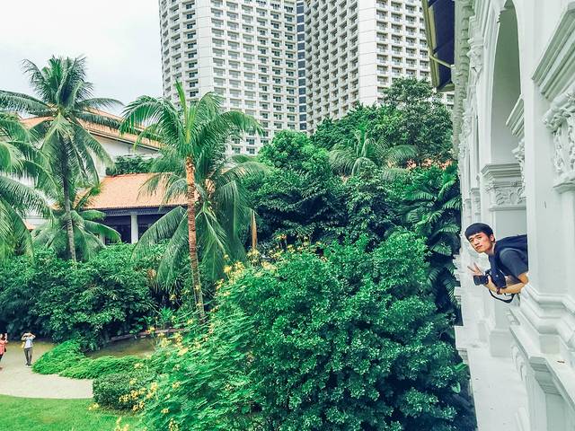 地铁站出来,我们找到酒店前台check in,但是好像没房间,我们只能先寄存行李。酒店的前台很热心给我们推荐路线和地图。从酒店后门出去,就有吃饭的地方。吃完早餐,我们按照地图很快就找到了酒店附近的莱佛士酒店。莱佛士酒店好像是新加坡最豪华的酒店了吧,一栋栋英式建筑,有悠久的历史。