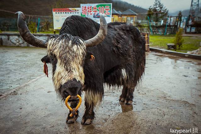下雨了,牦牛都淋湿了呢。我感觉好萌好萌啊哈哈