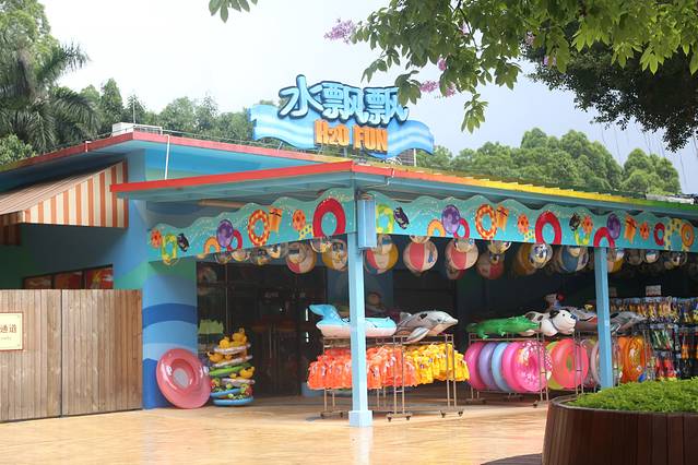 服务中心里面,基本上都是园区的纪念品,吉祥公仔之类,还有一些玩水的装备也是可以在这里购买。