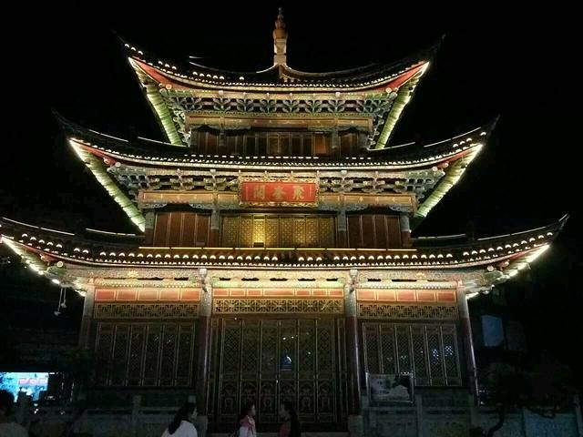 步行街十字路口的楼阁