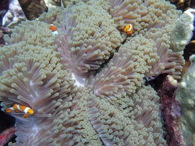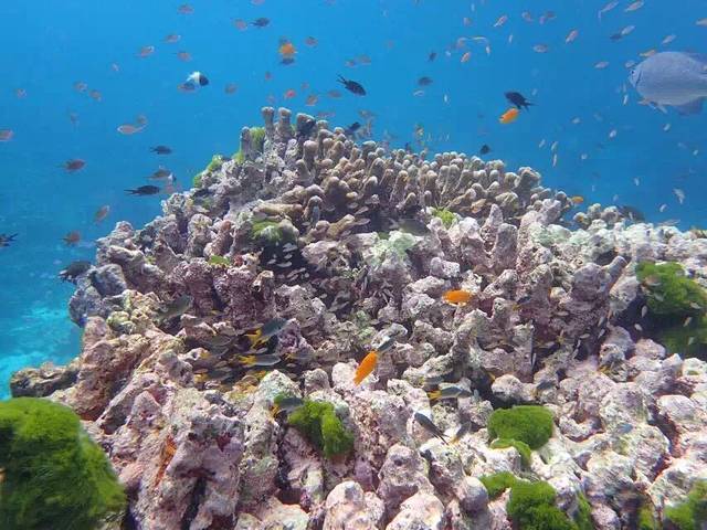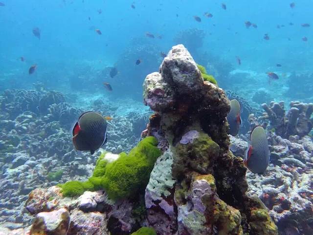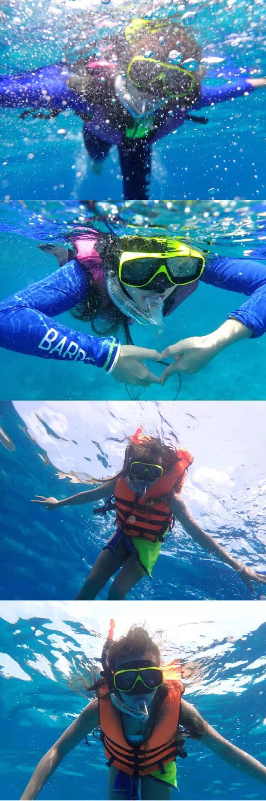 到了之后浮潜,这次浮潜不同的是海水比较浅,可以深下去几米摸珊瑚礁和鱼~看水下世界和鱼儿在身边游来游去…