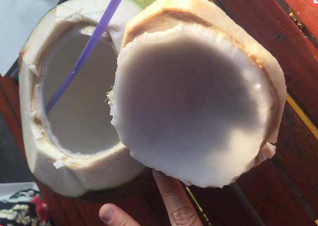 睡到4点起床出门,到昨天那家小店,榴莲糯米40株一根,椰子30一个。