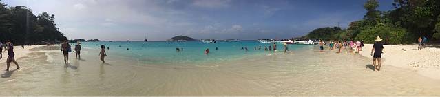 早上六点多出门,坐到码头大概八点,排队领手环,来到普吉岛之后看到了很多同胞,因为兰塔岛很少中国游客 基本都是欧美国家的游客。沙滩上也基本没什么人,岛上没有那么的商业化。而斯米兰的游客就很多了