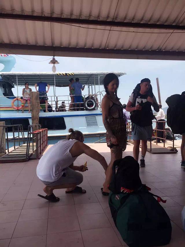 离开甲米,坐船去普吉,在码头看到这对很有爱的情侣,男生帮女生搽防晒霜。我表示很羡慕……