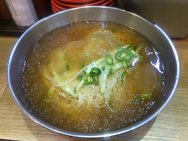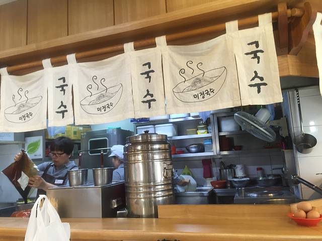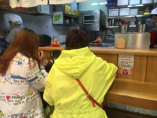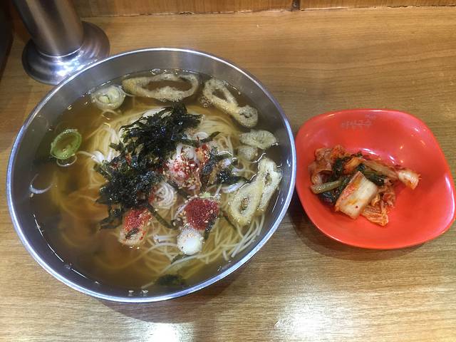 昨晚吃完炸鸡回酒店的时候看到24h面店,于是今早就来吃。自动点餐机看图片点,没搞懂又不敢乱点,竹竹用翻译器求助旁边等餐的帅哥帮忙点餐,看到人家操作就懂了。韩国大娘在柜台里面煮面端面不会出来的,吃完自己收拾好递到柜台里去。各种面都很好吃,我吃的海苔面,很鲜,放了自己带的油辣子非常美味。曲曲点的是冷面,还有冰块,不过她觉得好吃。台面上有辣白菜自己取,很好吃。