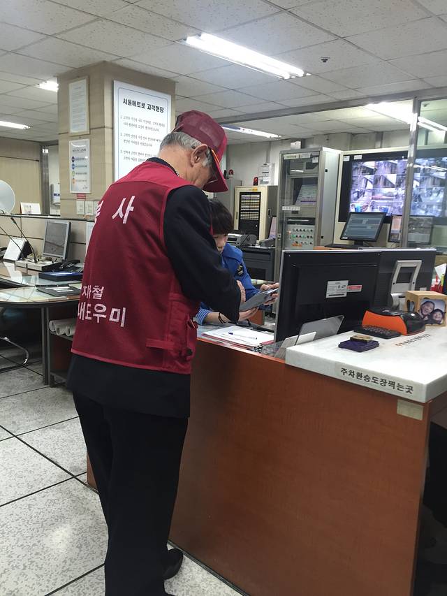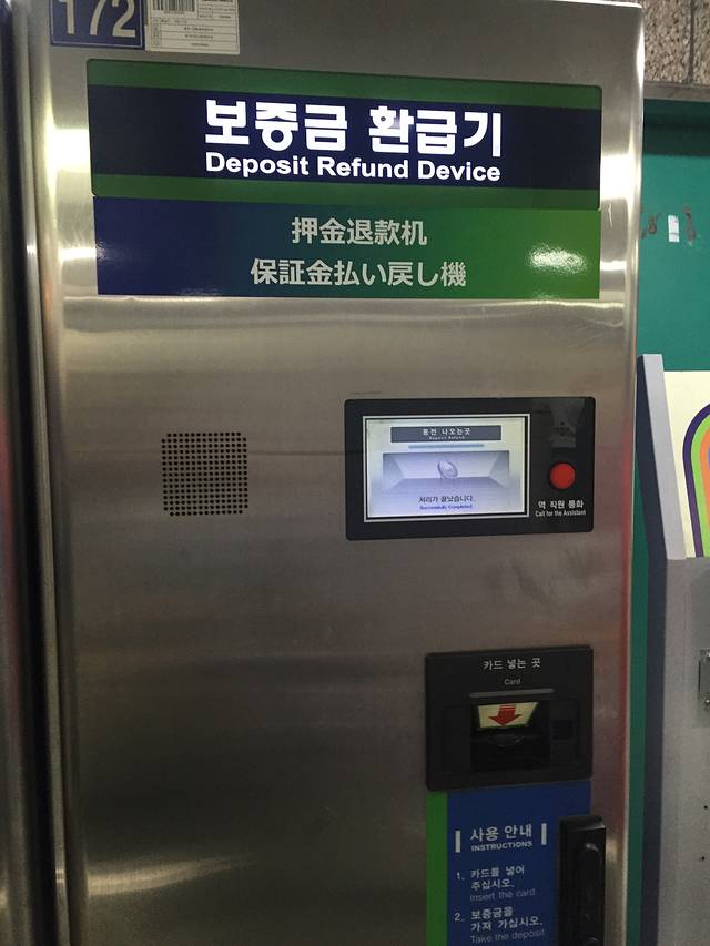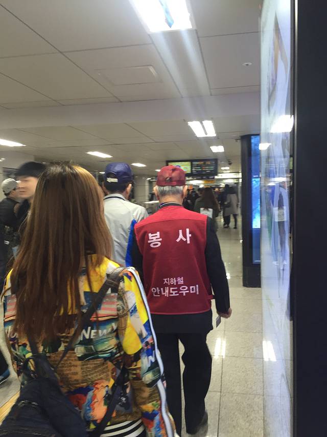 坐地铁回酒店。想到明天要走了就取退交通卡里剩下的钱和押金,发现自动退款机用不起,这时一个地铁工作大叔走过来,他不会中文,大致意思是问我们是否需要帮助。我们指着自动机器给他看,他似乎明白了,直接带我们去工作室,没想到他们误解了我们的意思以为是询问交通卡是否正常,用翻译器翻译押金退款工作人员也不明白,出现交流障碍了。我们又出来,大叔看我们很着急非常友善的又走过来,我指着押金退款的机器给他看,终于明白了,又带我们去工作室跟工作人员交流,最后顺利退到了。我们办理的时候,可爱的大叔一直腰杆笔直地站在旁边,走的时候我对他鞠躬说了懂得极少的韩语,酷嘛思密达,他笑了。
