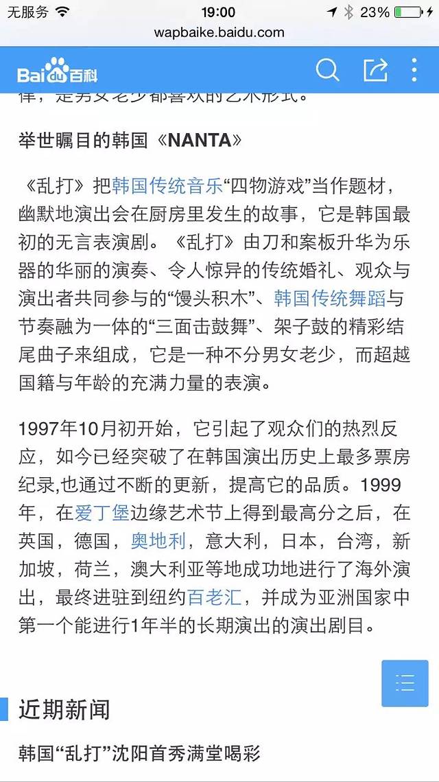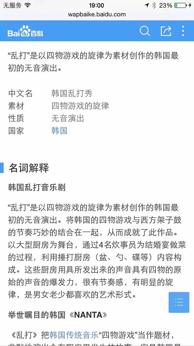 晚上就在明洞看了一场韩国乱打秀,很精彩,值得推荐,只是全场不能拍照,给你们看下乱打秀百度百科。