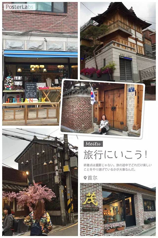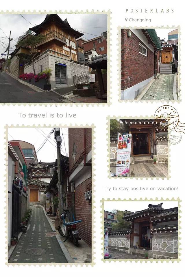 下午去北村韩屋村。非常有风格的韩屋,就像韩剧上看到爬坡上坎的独门独院,每一户都住了人。因为开发为旅游景点了,外墙或院门上粘贴有手写的海报,嘘,请勿高声喧哗…让人不由自主地遵守,以免打扰居民原有的宁静。