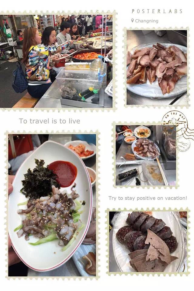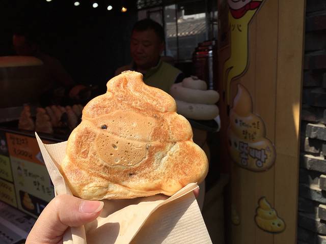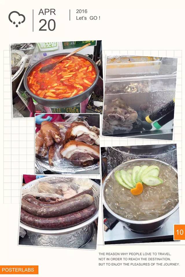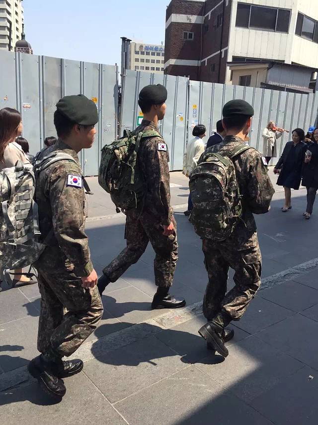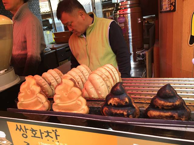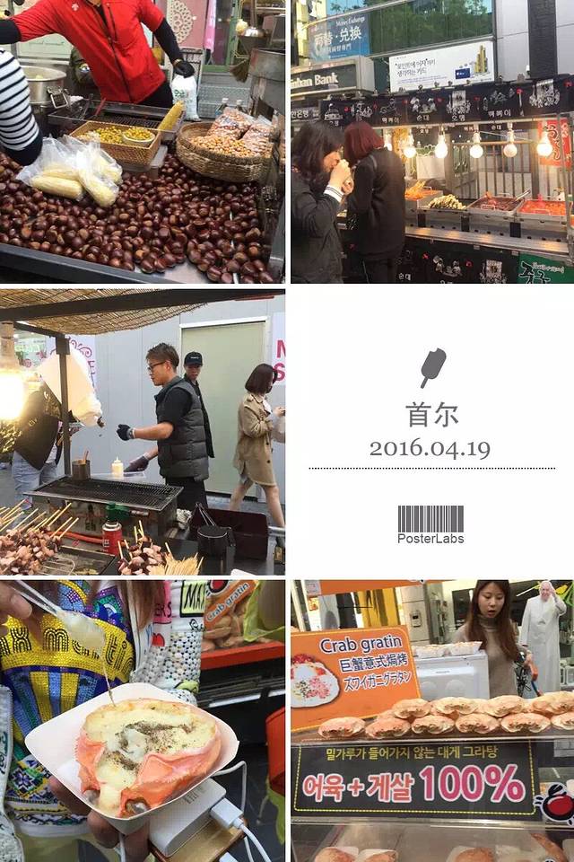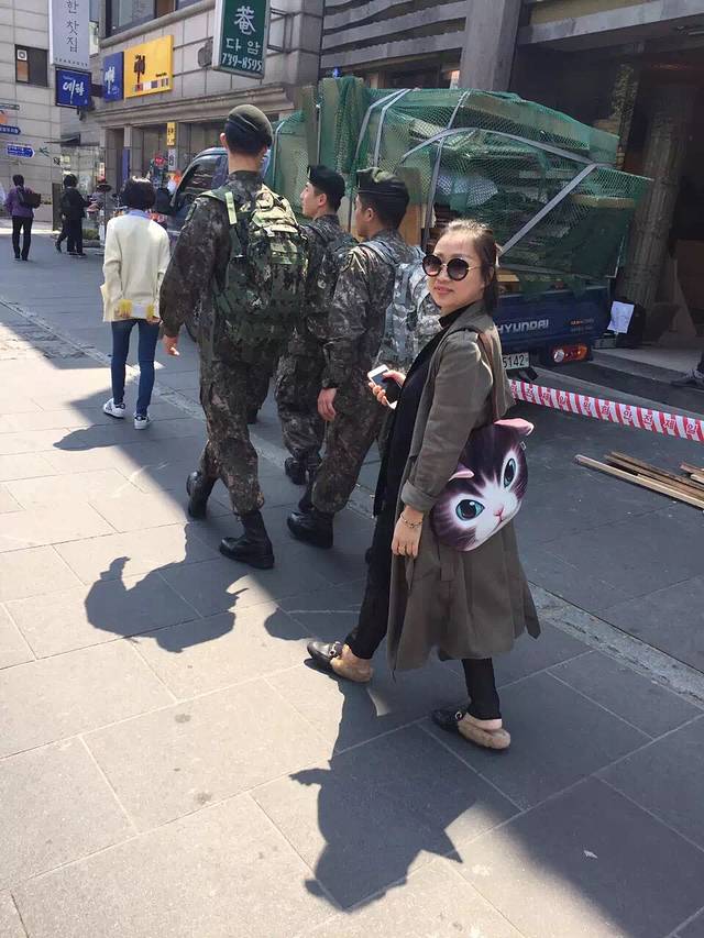 午餐去找的韩国料理,拌饭,海鲜饼,酱蟹,吃得很饱。然后在一条步行街随意逛逛,好多特色店子,我在街边一个专门卖猫猫饰品的小摊给女儿买了一个包包,折合不到rmb100,做工很好,很实用,之后我在首尔一直背着。在步行街逛的时候偶遇韩国军人,因为之前在看热映的太阳的后裔,突然看到宋仲基一模一样的帅气军服觉得好激动,追上去赶紧照了几张,哈哈。看到街边各式小吃也去买来分着吃尝尝。