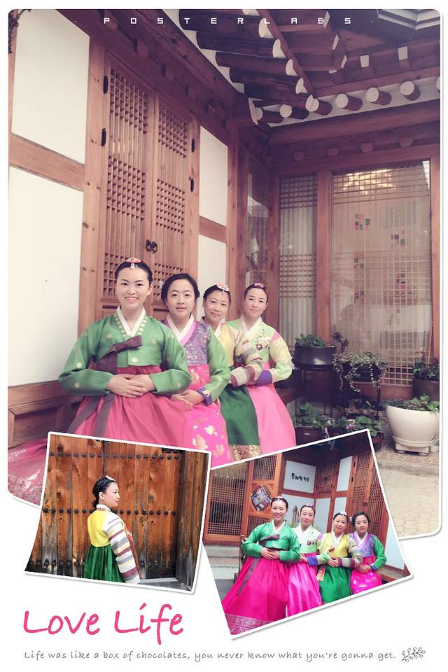无意间发现有个专门租韩服的小院,4个人租服装加头饰,跟她讲价说cheep然后优惠了一点rmb500多。各式韩服非常干净,做工精细,她会给你选适合你的,自己不喜欢也可以换。然后穿上可以在她院内照相,也可以穿出去逛。算是过了把韩服瘾。