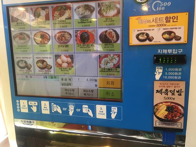 自助点餐机,把韩币放进去点餐