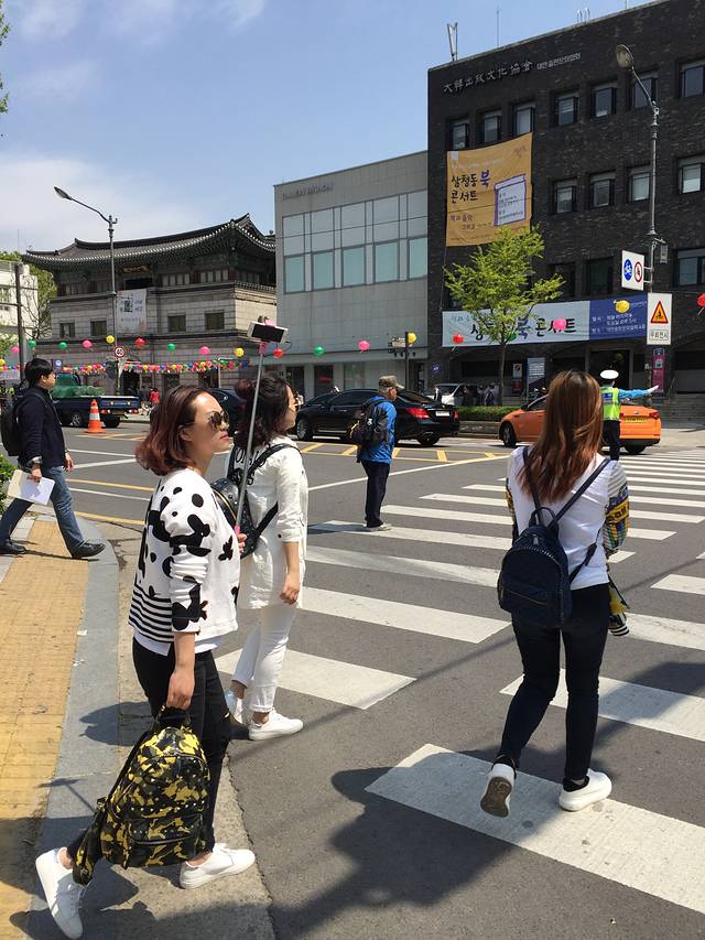 从景福宫出来导航去找午餐吃。天气太舒适了,行走在首尔的街头,感受这个国家这个城市的韵味。街边的树上沿途挂着韩式风格的纸灯笼,整个城市跟人的感觉就是特别干净和素雅。街上偶尔可见穿着韩服的韩国美眉,让你忍不住想跑过去照两张。感触最深的就是过人行道,哪怕没有红绿灯短短的,明明几步就可以走过去,车子永远都会淡定的停下来等你哪怕是慢慢走过,而且永远不会按喇叭。让你不得不感叹人家的素质。走在街头随处可见身材瘦长,皮肤好好的韩国美眉,没有浓妆艳抹,最吸人眼球的是每个都涂了口红,看来口红真的很重要,我想起之前看过的一个攻略说从韩国回来都爱上口红了。的确如此,我真的是爱上口红了。