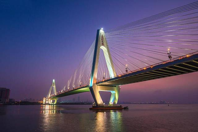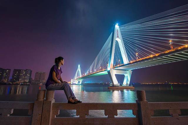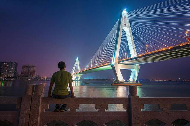 夜晚将至,彩灯初亮的世纪大桥,也很美丽。