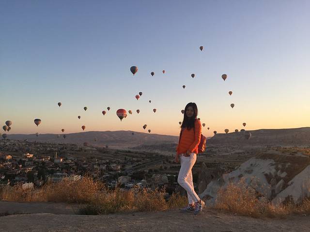 在热气球上疯狂自拍了无数张,
