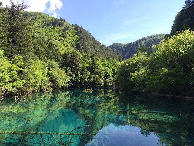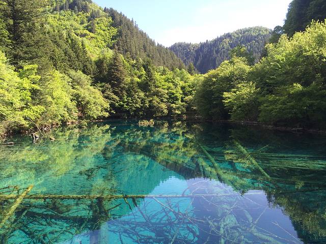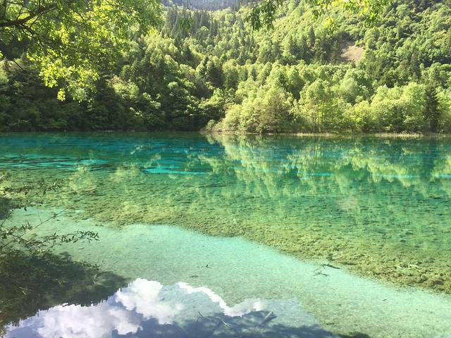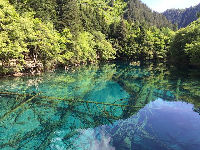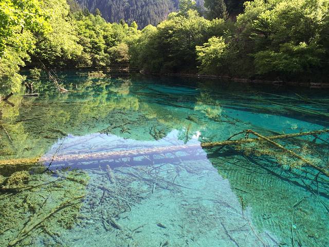 早上九点进去,人比较少,缆车上去,以为下了缆车就是黄龙最高点的五彩池,事实并非如此 下了缆车 大概走了一个小时才到五彩池,中间经过“阴冷的”森林,没错 前一天刚好下了雨 五月份的黄龙还是很冷的,雪山上的雪还没化,我穿了一条单裤,两个外套,走出那一片树林那叫一个冷!