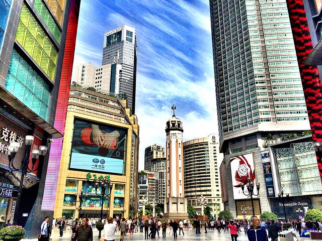 5.15上午,重庆标志性建筑,解放碑。本着到此一游的精神,我也拍了张到此一游,走人…