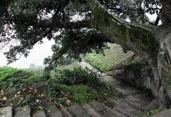 古栈道有12个弯拐,每个弯拐旁有一根古黄桷树,形状都不相同,象一把把巨大的绿伞为行人遮蔽阳光风雨,粗壮繁茂其根深深扎入土壤,想必应是保坎不垮,堪称新溪一绝。显然这些黄桷树是为码头挑夫、脚夫和行人而栽。当人们走在这古道上,目睹着眼前的12个弯拐,12根古黄桷树。自然地联想到岁月的流逝,劳动者的艰辛,人生的感悟。