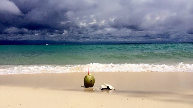 没🈶咖啡喝饮料,只有原始的椰子汁。
