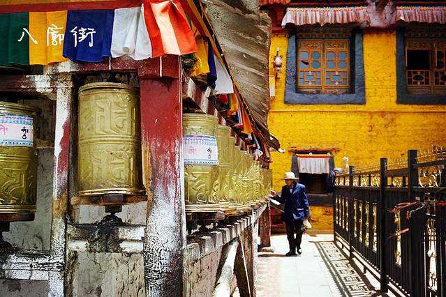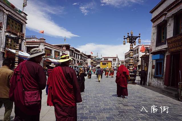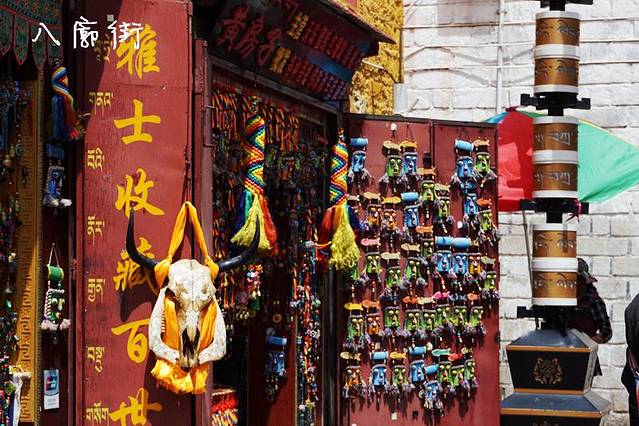 八廓街其实最早就是围绕着大昭寺的一片居民区,因为大昭寺被众多信众认为是宇宙的核心,朝拜人络绎不绝,很多信众就住在周边这些区域,所以渐渐的发展而来。其实八廓街就类似于很多古城的商业街,像丽江古城啊、平遥古城,但是这里民族气氛更为浓郁,生活气息也更加浓郁,至今仍有很多居民在这里居住生活。八廓街有很多售卖拉萨手工艺品、药材的地方,如果不是为了拍照或者装饰,建议不要购买,大部分都是假的。据当地人讲,八廓街很多装饰品都是天葬师从死者身上拿下来的,所以大家还是以观看和拍照为主。