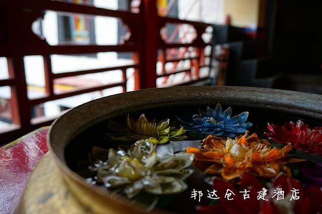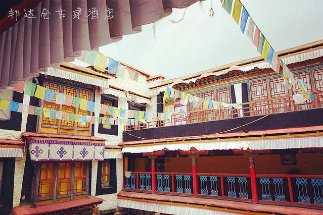 选择这个酒店,是因为看到去哪儿网强烈推荐,位置在八廓街区,可以乘坐出租车到达拉萨晚报,酒店会派人出来接。酒店非常漂亮,有种山穷水尽疑无路,柳暗花明又一村的感觉。由于这个邦达仓古建酒店是个具有历史意义的古建筑,所以整体透出一种远离钢筋水泥土的欢快,古韵油然而生,典型西藏民居,笔画颜色鲜艳,设计通透。我们住的是普通标间,没有电视,但是面积足够大,干净、幽雅、古朴、独特,作为入驻西藏的第一晚,我们都非常的惬意。酒店服务非常暖心,前台小姑娘非常热心,酒店还有毛毯,人性化服务,我要点赞。