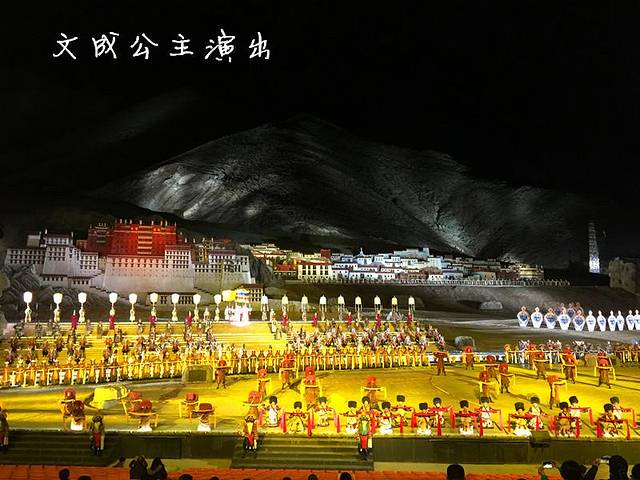 非常非常棒,强烈推荐!在拉萨当地很多旅馆都可以代订演出票,去哪网上也有打折门票,建议连着预约接送车一起都买了。因为看完大概晚上十一点多,在拉萨河附近,打不上车的。演出非常棒,很感人,把文成公主入藏的艰难还有松赞干布的领袖情节描写的惟妙惟肖,歌词生动好听朗朗上口,演员冒雨演出前,更是非常敬业,让人感动。强烈推荐!晚上可以看到拉萨的全景,非常美。登上日月山,那是文成公主回望家乡的地方,她一去不复返的毅然决然在此可鉴。回望家乡,摔碎铜镜,换上藏袍,把公主的嫁衣埋入公主冢,当年一个十几岁的小小少女是如何做得到的呢?我真的很钦佩,我向公主冢拜了又拜。遥望长长的天路,不回来,那是怎样的心灵考验!累死多少匹马,走死多少峰骆驼,才可以到达天路的尽头?我不知道文成公主是否脆弱地哭过?抱怨过?无望过?我忽然理解了人们为什么这样敬重文成公主,这样地传颂她,那是对一种精神的唱诵,是对生命的礼赞。今天我们也将在此回望我们的城市,转身走近西藏,我忽然觉得自己也有些许的了不起。
