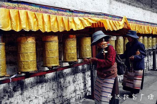 整个布达拉宫一面墙全部都是转经筒