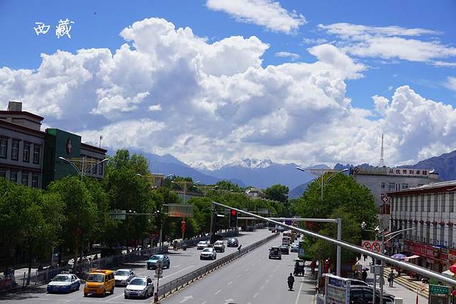 站在拉萨天桥上,就可以看到雪山