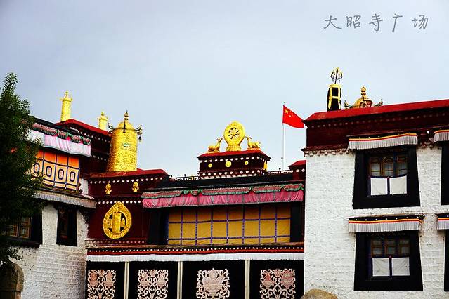 大昭寺是一座平川式寺院建筑,融合了汉族、藏族、尼泊尔的建筑风格