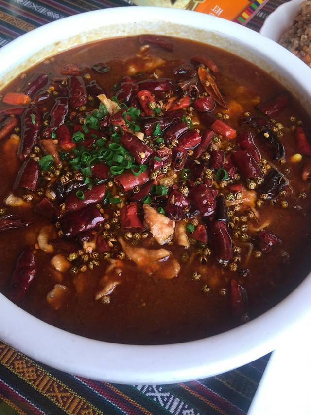在白塔散团,就正好到布达拉宫对面的澳门豆捞吃饭。本来以为西藏的澳门豆捞和内地一样,没想到居然不一样很有藏式风情,从锅底到小料,哈哈大吃一惊的美好。我们两人消费200多,吃到撑,锅底味道很棒,是有点像林芝石锅鸡那种菌类又麻香的味道。