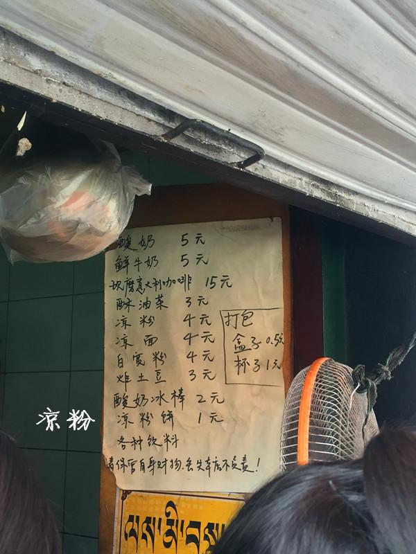 很多驴友推荐。很多人排队,很多当地人吃,地方不大,两个小屋,很多人打包带走。东西都很便宜,1~元的小吃居多。把菜单都吃完也不用多少钱。不过去的晚很多东西没有了。这家店在仙足岛附近,旁边是一家德康酒店,就在妇幼保健院旁边一条巷子往里面走百十米,找到可费了我九牛二虎之力。措姆凉粉人气挺高的,这家店门牌是藏式的,里面就特别简单甚至可以说简陋了 T T 大家挤在小小的店面里吃饭,但是挺暖和。