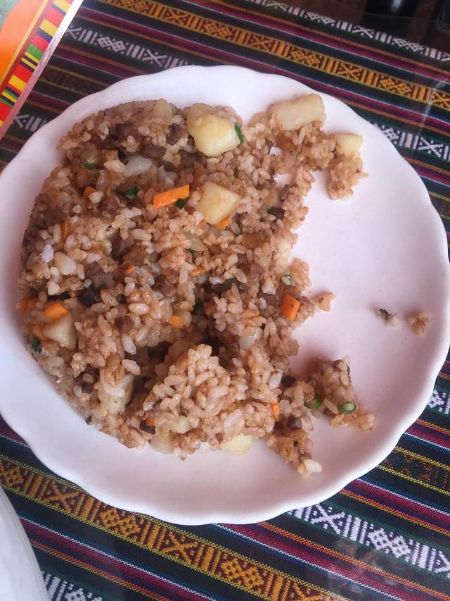 在宇拓路附近,还是很方便找到的。从布达拉宫出来沿着北京路就可以找到。点了鸡肉汉堡,招牌沙拉,炸羊肉,味道一般般。不过当地人貌似很喜欢,很多当地人在那里吃,俩人花费100多,价格还可以。在我们用餐的时候有个僧人进来要钱,因为身上实在没有零钱了,他也没有强求,指着桌上的牛排,我们就把牛排送给他了。