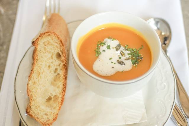 南瓜汤,还有Bonnie很喜欢的法式硬面包。